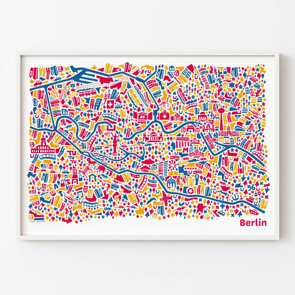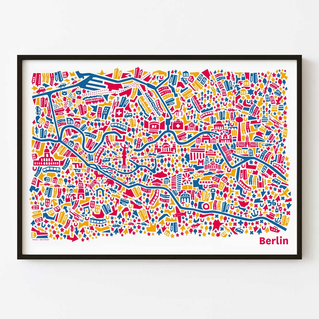 Stadtplan Berlin Poster im Bilderrahmen: Holzrahmen verfügbar in Eiche, Schwarz oder Weiß, Profil 20 mm.