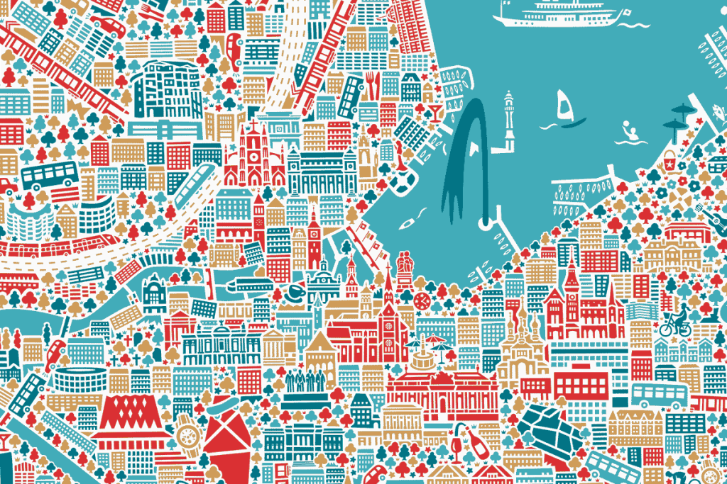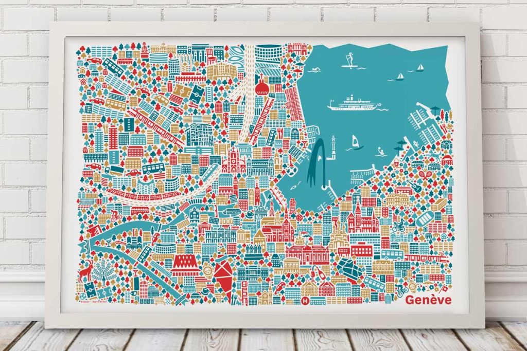Einige Zeit nach meinem Besuch habe ich eine Vianina Map von Genf gezeichnet. Hol dir ein Stück dieser wunderschönen Stadt nach Hause – die Illustration kannst du hier unten für deine Wand bestellen.