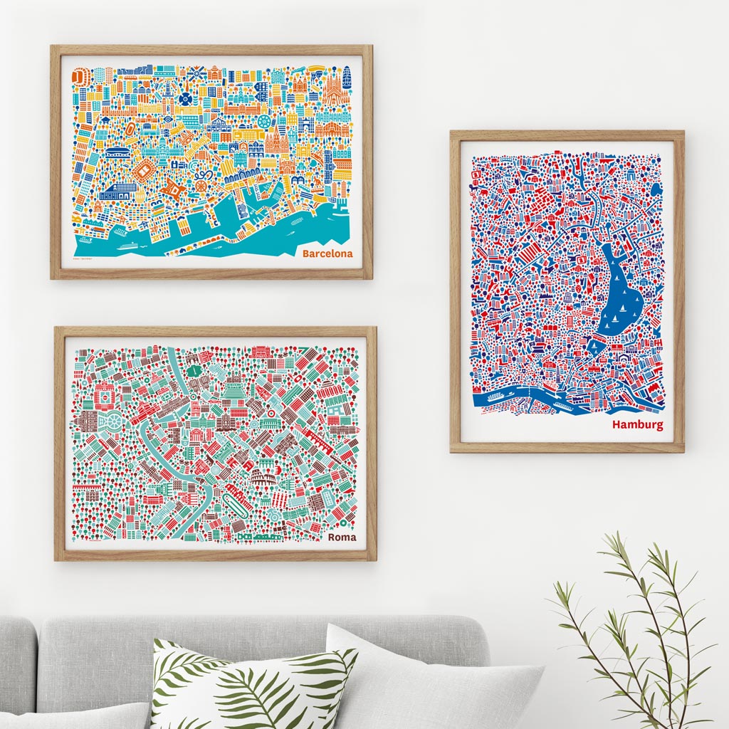 Vianina Art Map Posters of Amsterdam, Barcelona, Berlin, Budapest, Hamburg, Cologne, Lisbon, London, New York, Munich, Paris, Prague, Rome, Salzburg, Sydney, Venice, Vienna & World Map available available as attractive package!