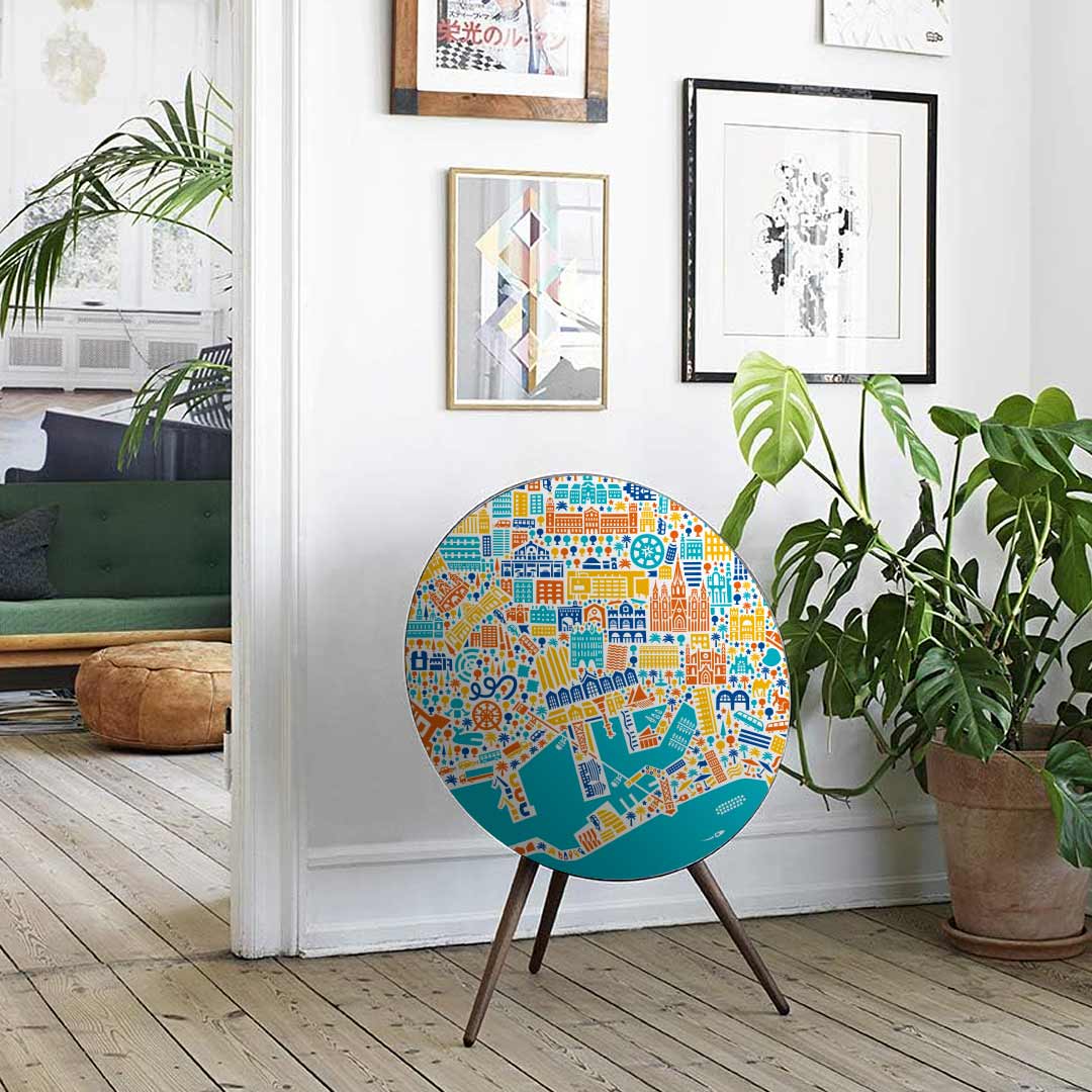 Starting in October 2015, the stylish Bang & Olufsen BeoPlay A9 speaker featured my Vianina city maps of Amsterdam, Barcelona, Berlin, London, New York, and Paris as its front cover. This collaboration was with Klang & Design GmbH & Co. KG, one of the leading Bang & Olufsen retailers. The BeoPlay with the Vianina covers soon became available in their webshop, www.luxussound.com. Additionally, the entire edition was sold at the Stilwerk store in Berlin and at various Bang & Olufsen shops throughout Germany. I am very pleased that my city map illustrations adorned such elegant audio devices, as listening to music has been a part of my life for as long as I can remember—even while drawing. And the name of my partner company already hints at it: the BeoPlay Vianina Edition is a wonderful blend of sound and design!