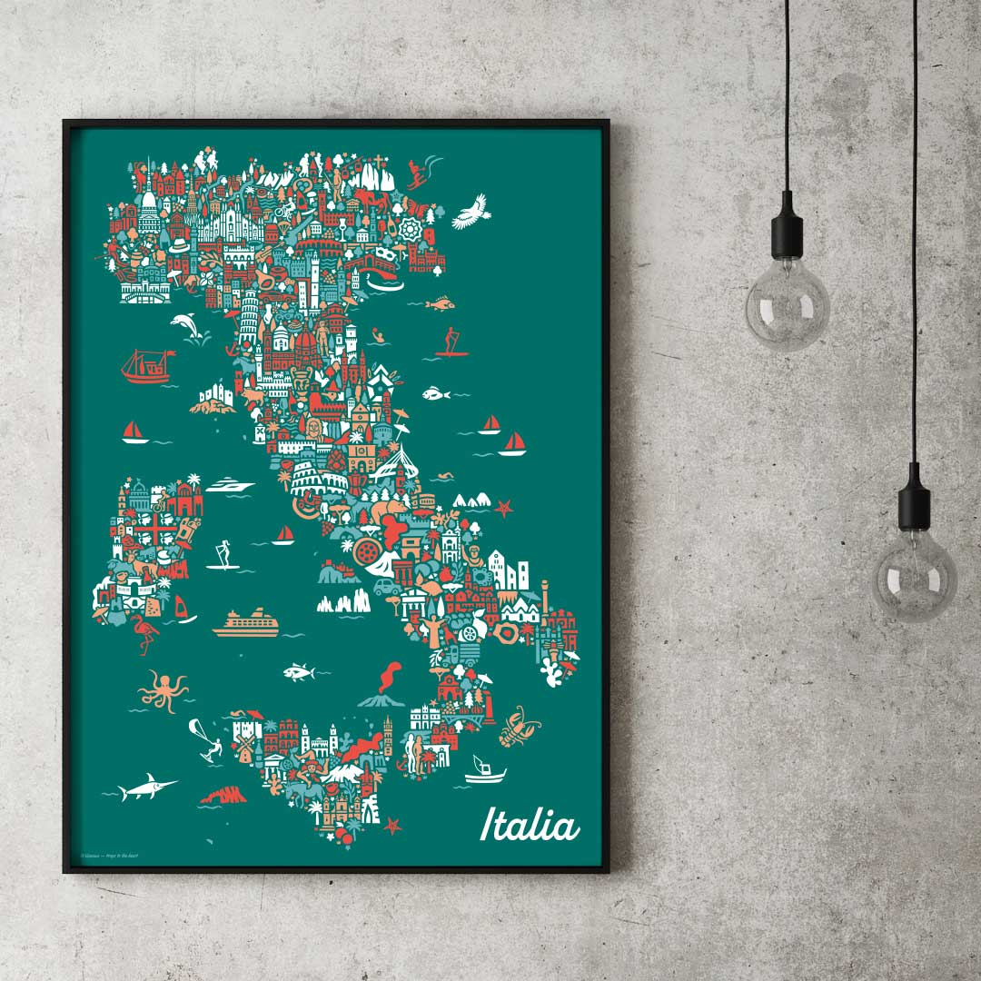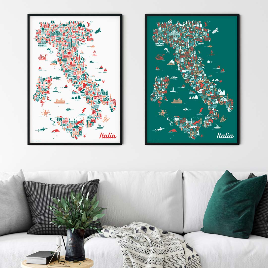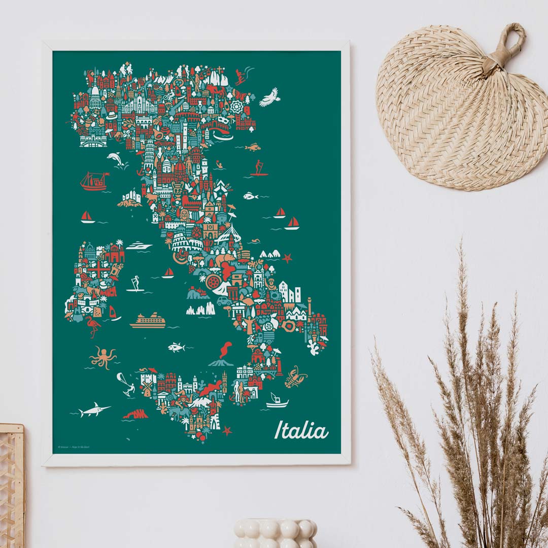 Bringe das Flair Italiens in dein Zuhause mit dem bezaubernden Italien-Karte Poster von Vianina. Jetzt online bestellen und die Schönheit dieses einzigartigen Landes genießen!
