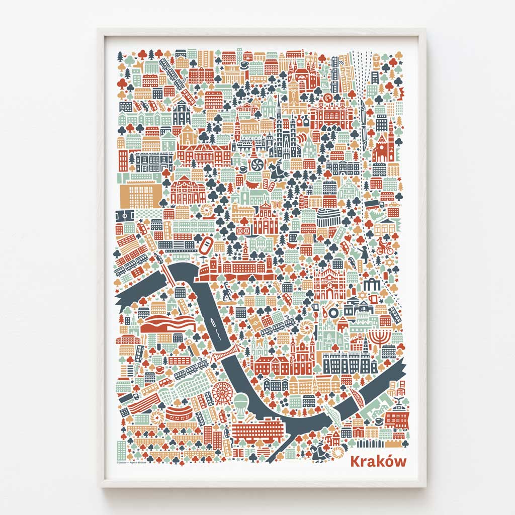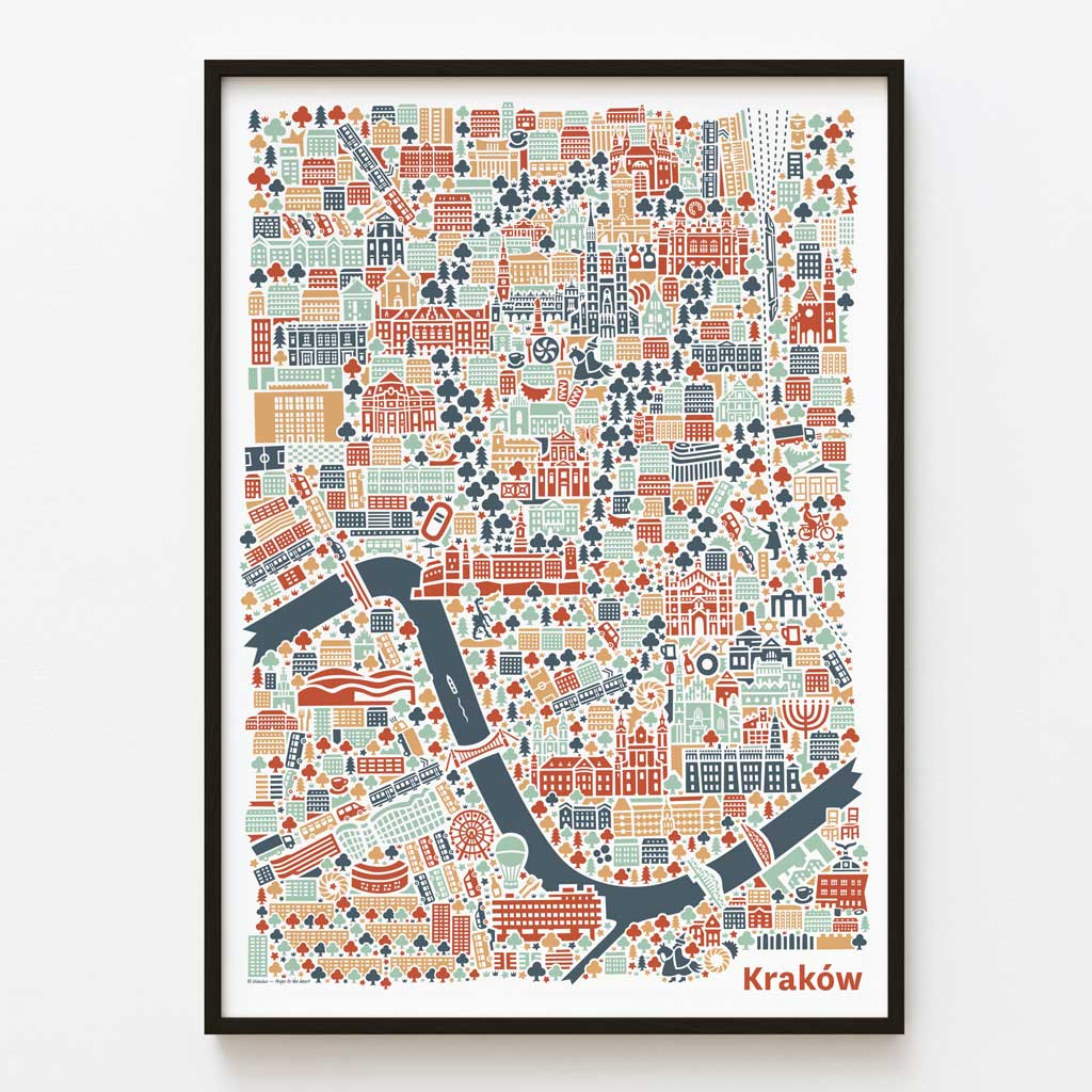 Hol Dir die einzigartige Atmosphäre Krakaus nach Hause – mit dem detailverliebten Vianina Krakau Poster im hochwertigen Holzrahmen. Diese kunstvolle Stadtillustration zeigt die kulturelle Vielfalt und historische Bedeutung der polnischen Metropole auf eine charmant-verspielte Art. Ideal für alle, die Krakau lieben, dort besondere Erinnerungen haben oder sich einfach in die Schönheit dieser Stadt verliebt haben.