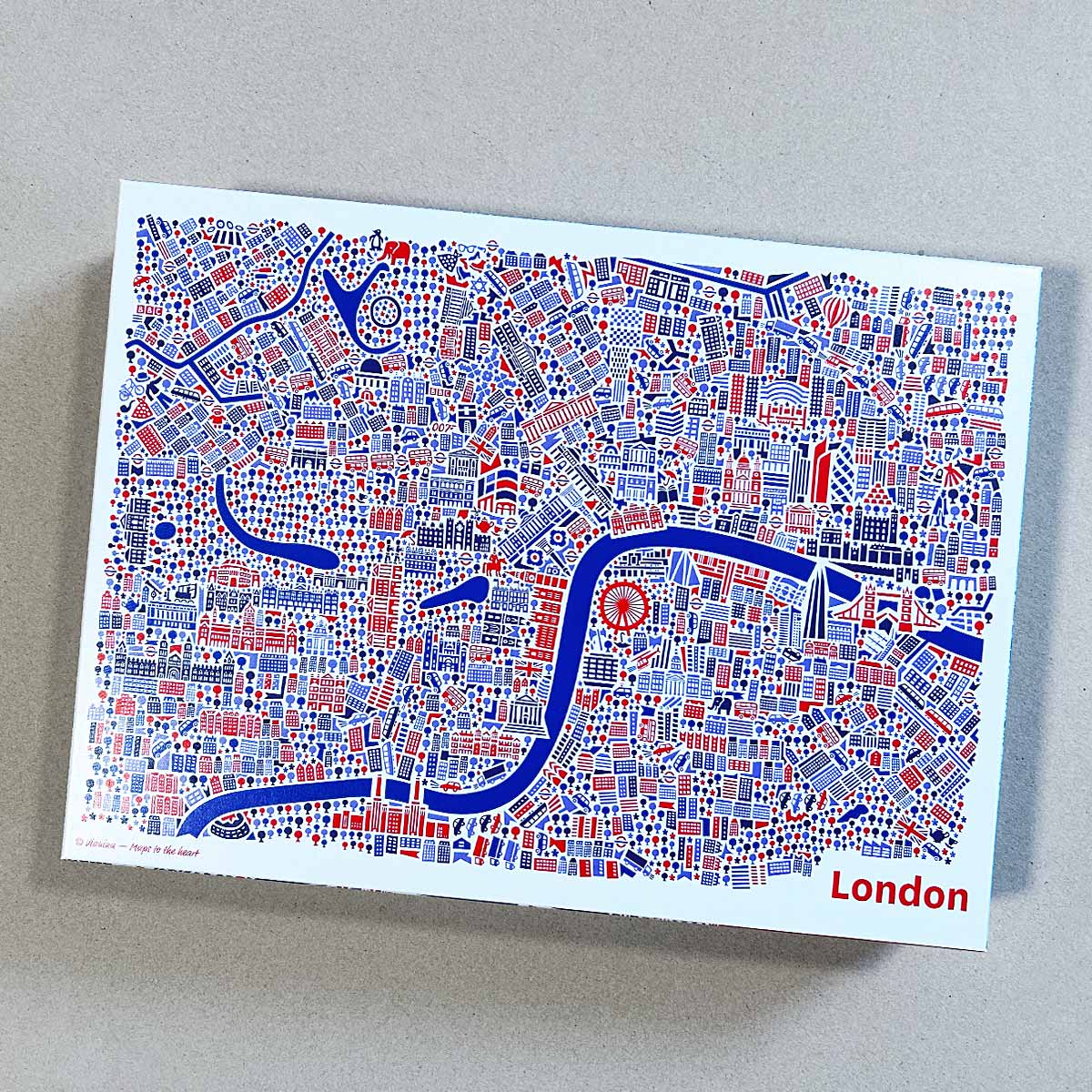 Entdecke London in 1000 Teilen. London Stadplan Puzzle mit den Sehenswürdigkeiten Buckingham Palace, Tower of London, Tower Bridge, Madame Tussauds, London Eye, Hyde Park, Saint Paul´s Cathedral, Westminster Abbey, Westminster Palace, Trafalgar Square, Themse, The Shard, Oxford Street, Camden Town, London Zoo, Covent Garden, Piccadilly Circus, Tate Modern & Big Ben.