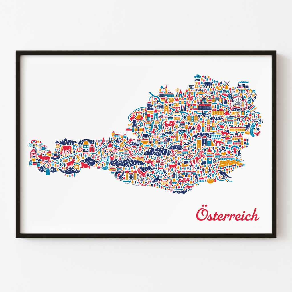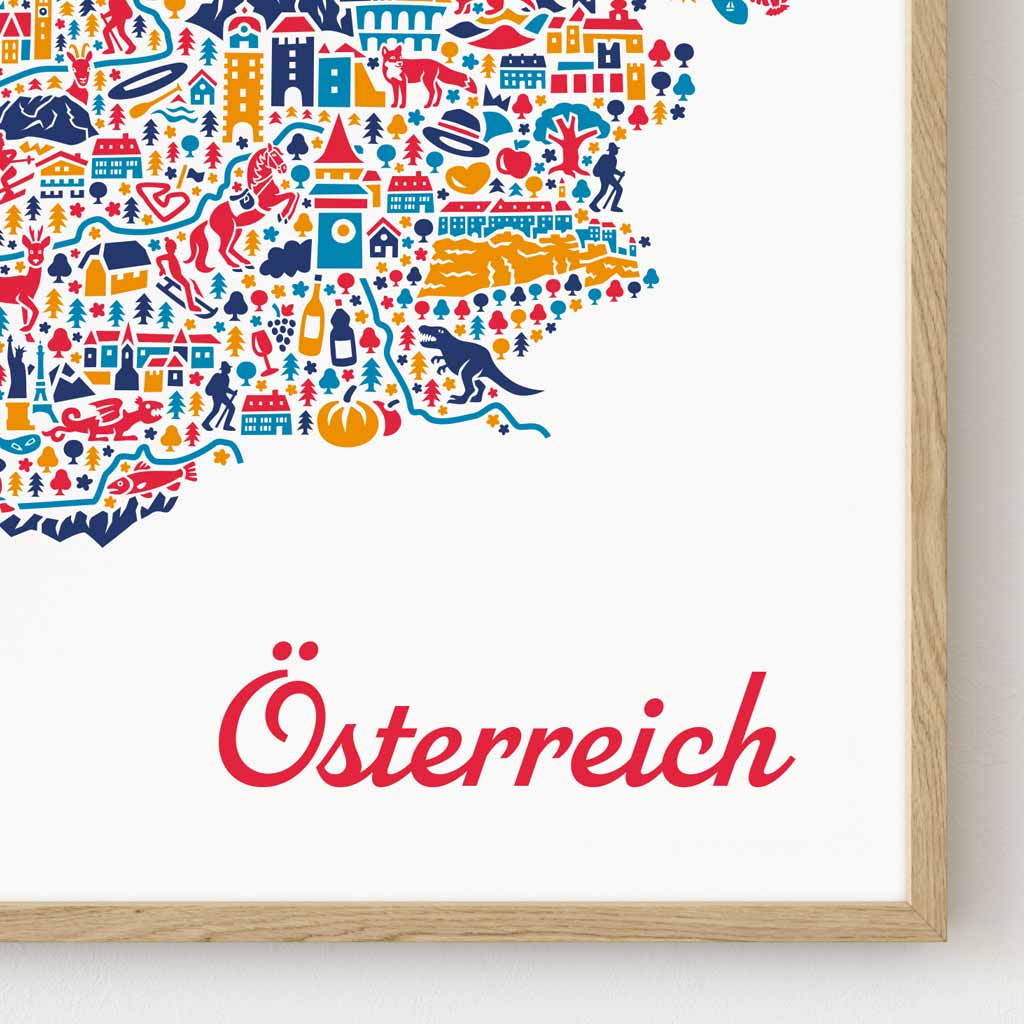Österreich Poster im Bilderrahmen: Holzrahmen verfügbar in Eiche, Schwarz oder Weiß, Profil 20 mm.