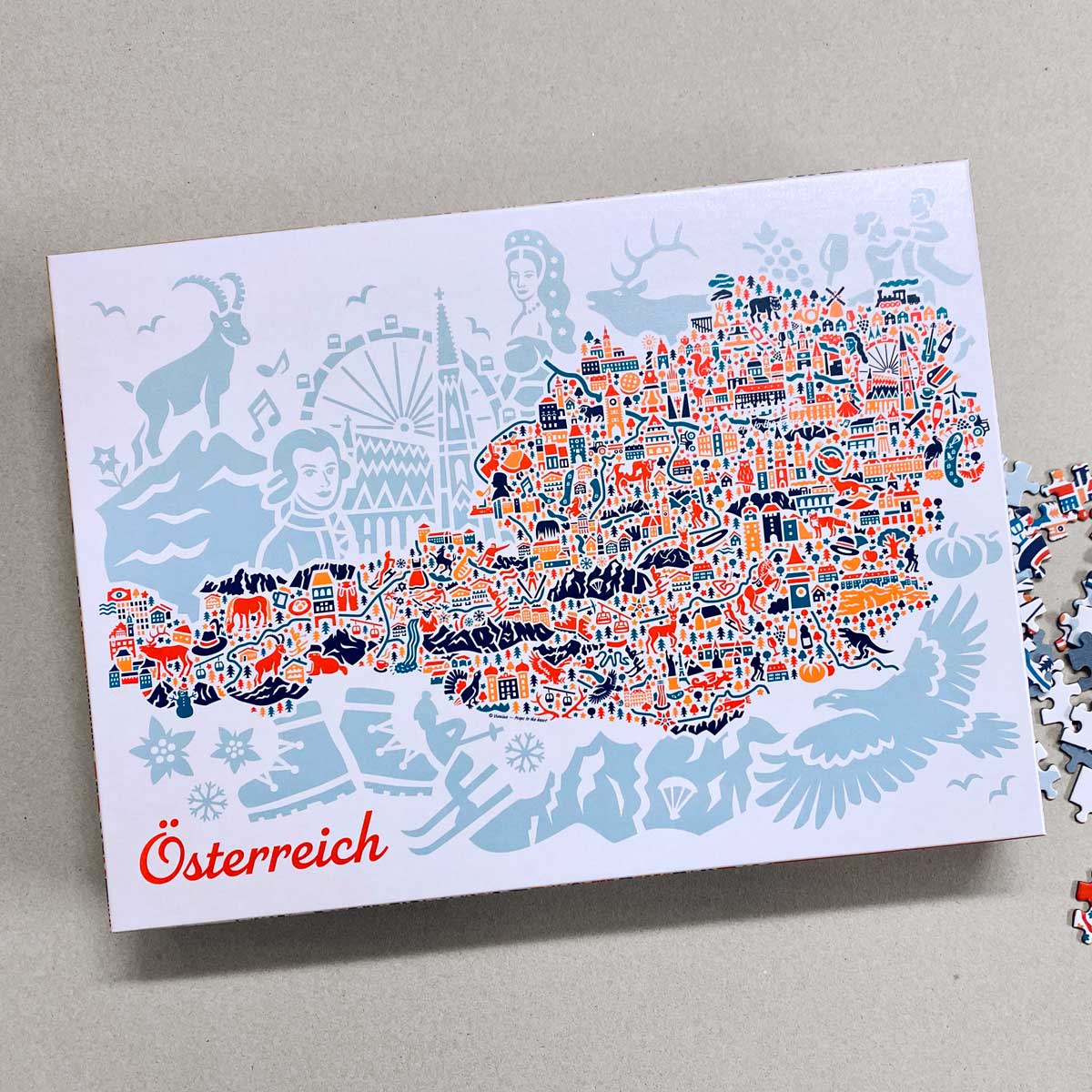 Erpuzzle Dir das wunderschöne Österreich in 1000 Puzzleteilen! Entdecke die Sehenswürdigkeiten Wien, Salzburg, Linz, Innsbruck, Graz, Bregenz, Tirol, Lipizzaner, Riesenrad, Stephansdom, Festung Hohensalzburg, Stift Melk, Großglockner, Goldenes Dachl, Dachstein, Mozart, Wörthersee, Hallstätter See, Sachertorte, Schnitzel, Wolfgangsee & Neusiedler See.