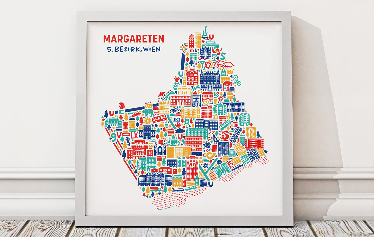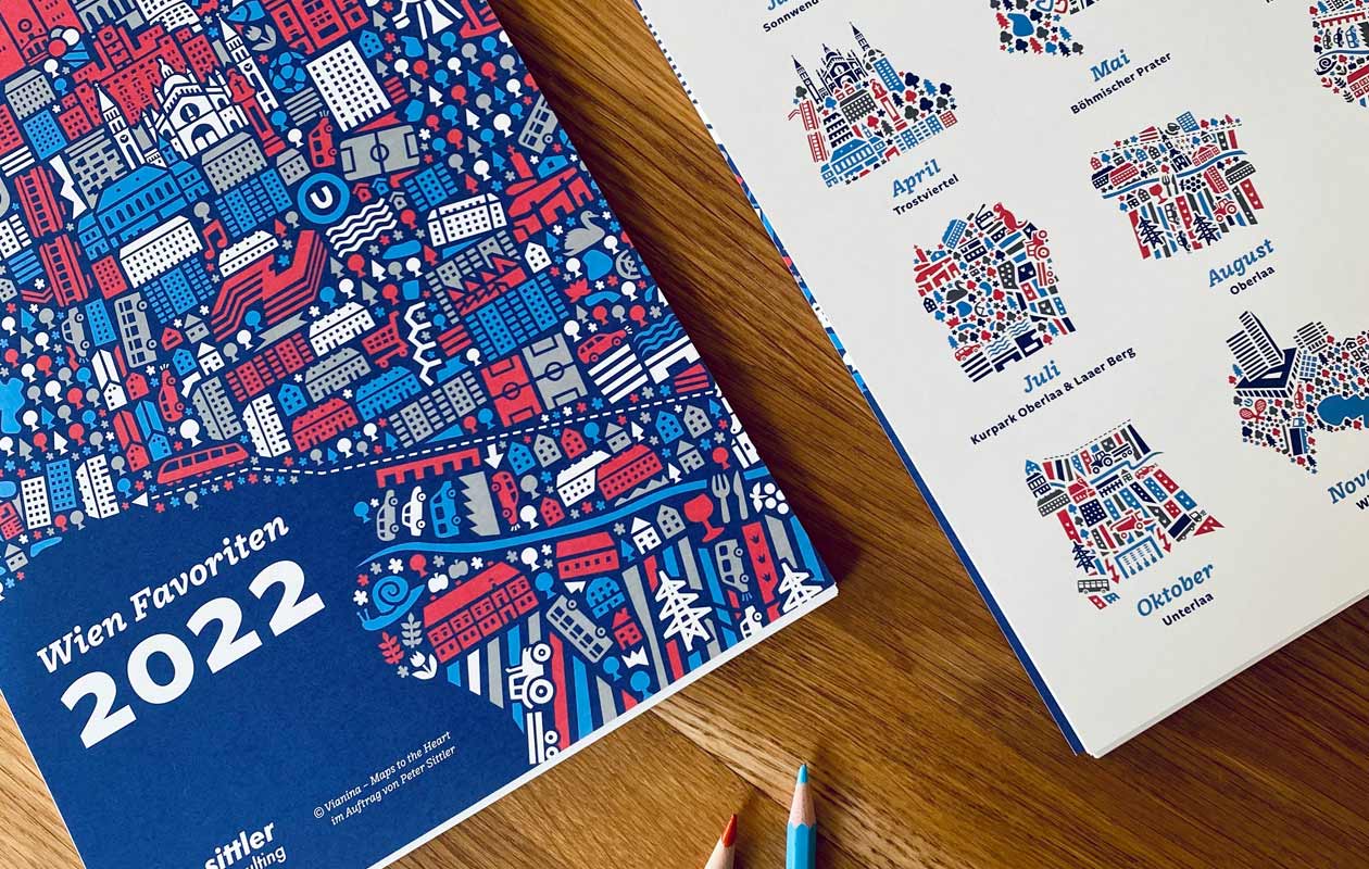 Peter Sittler der in Favoriten, dem 10. Wiener Gemeindebezirk, aufwuchs und lebt, ist ein großer Fan meiner Arbeit und beauftragte mich eines Tages für ihn ein eigene Vianina-Stadtkarte von Favoriten zu zeichnen.