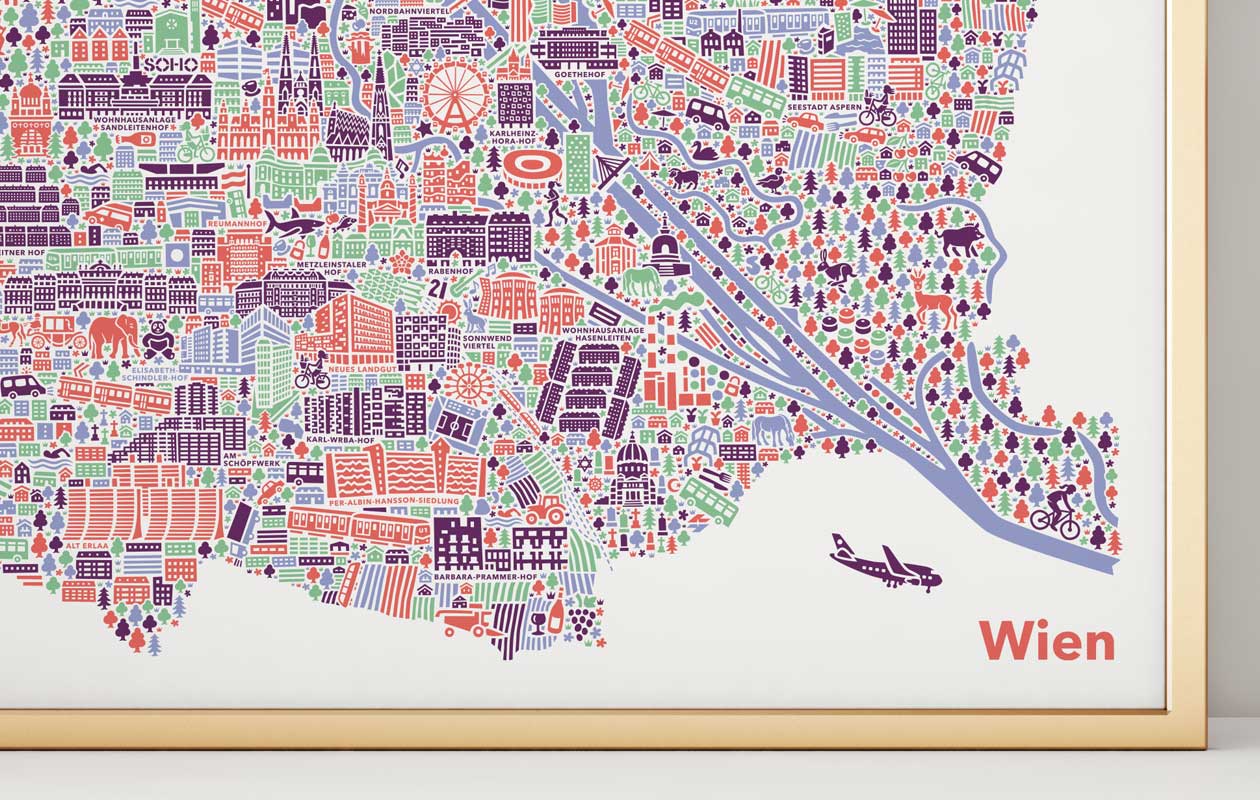 Wenn ich gerade nicht mit der Illustration meiner eigenen Stadtplänen von Städten wie London, Barcelona, Paris oder New York beschäftigt bin, zeichne oder lizenziere ich Karten für so unterschiedliche Auftraggeber wie Sony, Bang & Olufsen, HP, IBM, Ampelmann, Piatnik, MetLife, den Calgary Campus oder die Klosterkäserei Stift Schlierbach.