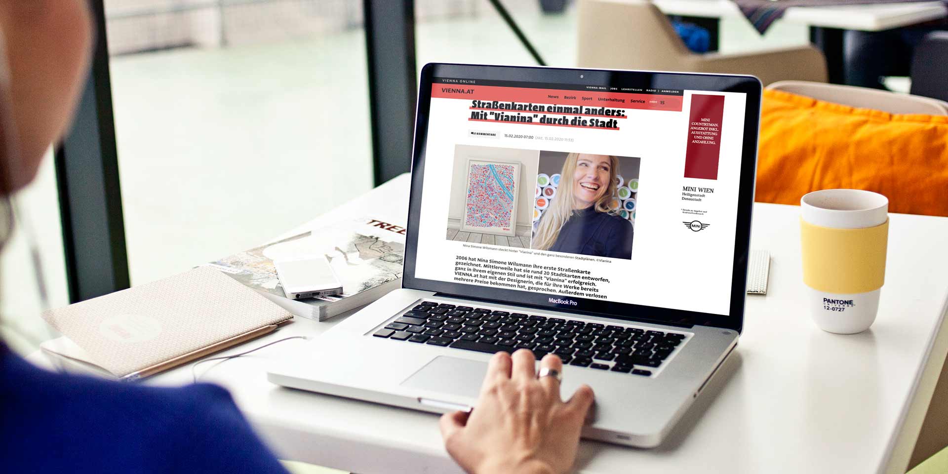 Über die Jahre wurde über meine Stadtplan-Illustrationen schon in einigen renommierten Magazinen, Zeitungen, Blogs & Medien, wie dem ORF (A), Die Presse (A), Der Standard (A), Kurier (A), Wiener (A), Flair Magazin (A & DE), Page (DE), Couch (DE), Living at Home (DE), Madame (DE), Herzstück Magazin (DE) und Glamour (FR) publiziert. Hier eine Auswahl an Interviews mit mir.