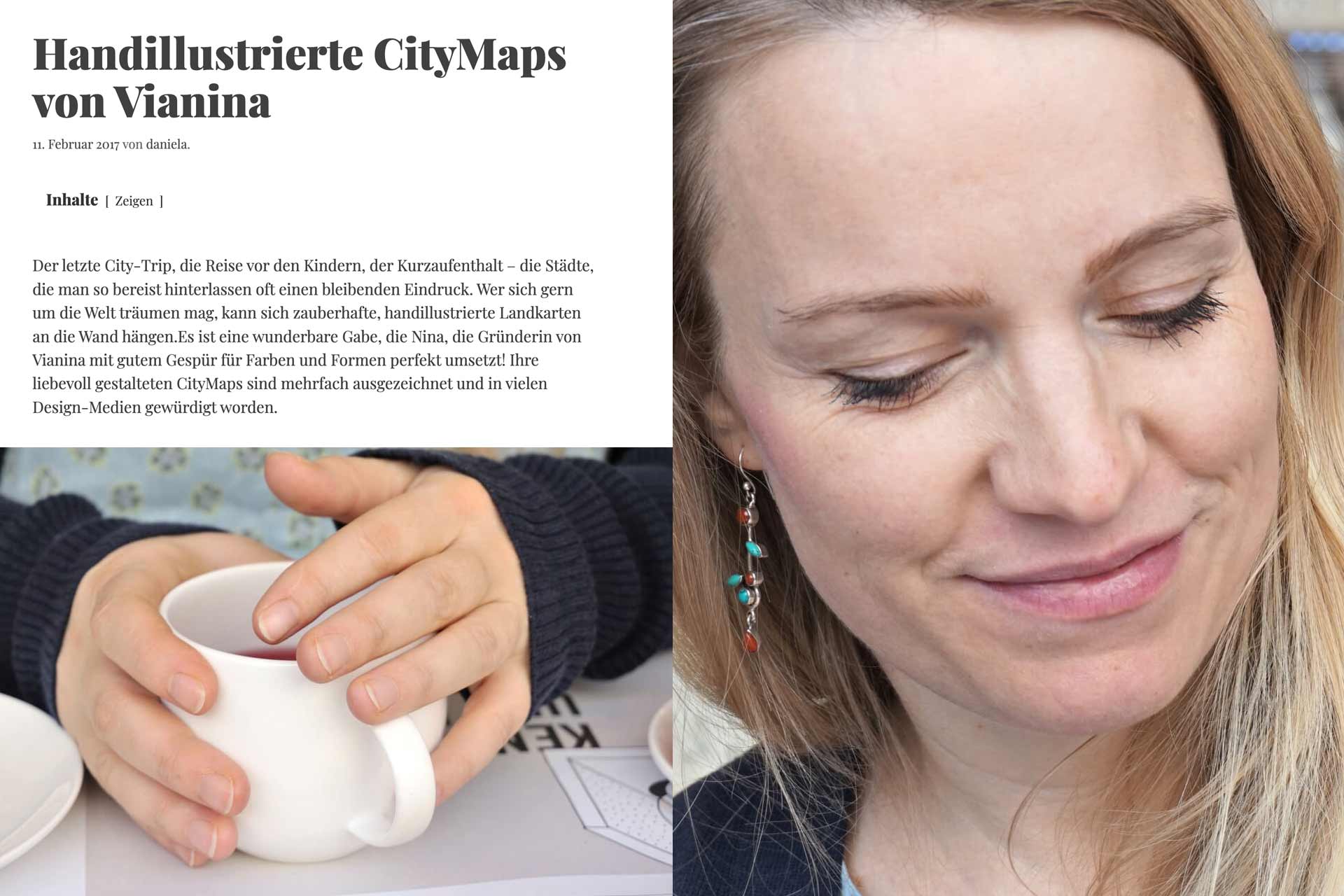 Es ist eine wunderbare Gabe, die Nina mit gutem Gespür für Farben und Formen perfekt umsetzt! Ihre liebevoll gestalteten CityMaps sind mehrfach ausgezeichnet und in vielen Design-Medien gewürdigt worden. Wäre Vianina ein Ansichtsmodus bei Google Maps – er hieße „Heart View ♥“
